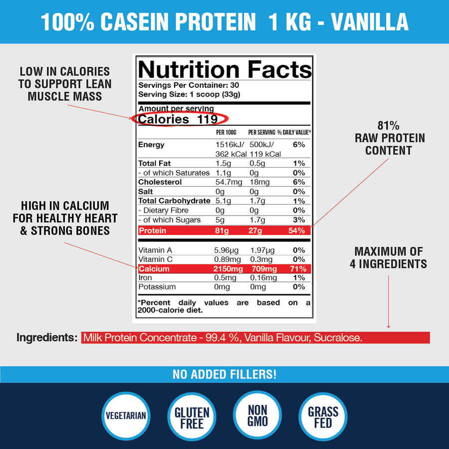 Our Casein Protein is made with the highest quality ingredients. Unlike other brands, our formula doesn’t contain any unnecessary additives or fillers. Because our formulations don’t contain any fillers, stabilisers, thickeners, emulsifiers etc it means you are getting the absolute maximum amount of protein per serve and none of the bad stuff.