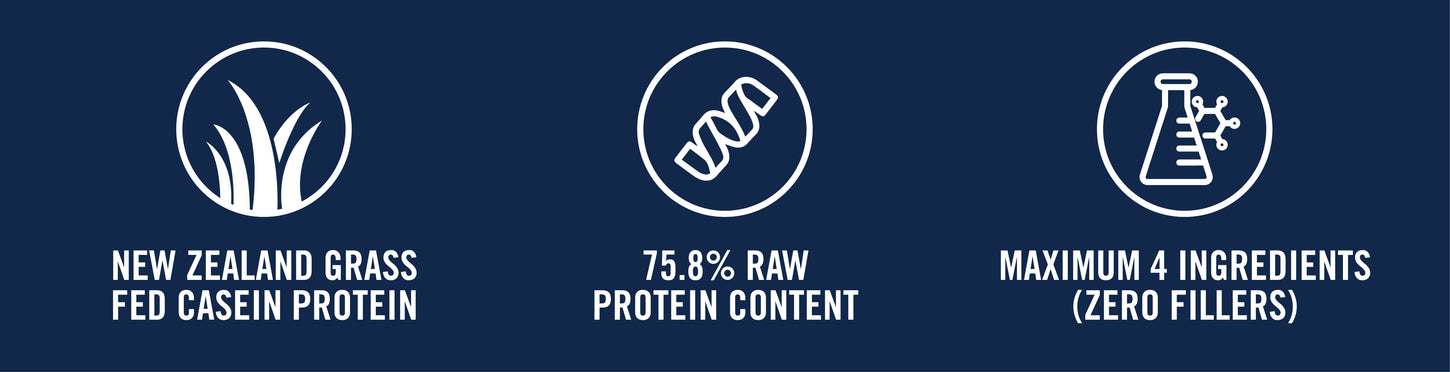 Our Casein Protein is made with the highest quality ingredients. Unlike other brands, our formula doesn’t contain any unnecessary additives or fillers. Because our formulations don’t contain any fillers, stabilisers, thickeners, emulsifiers etc it means you are getting the absolute maximum amount of protein per serve and none of the bad stuff.