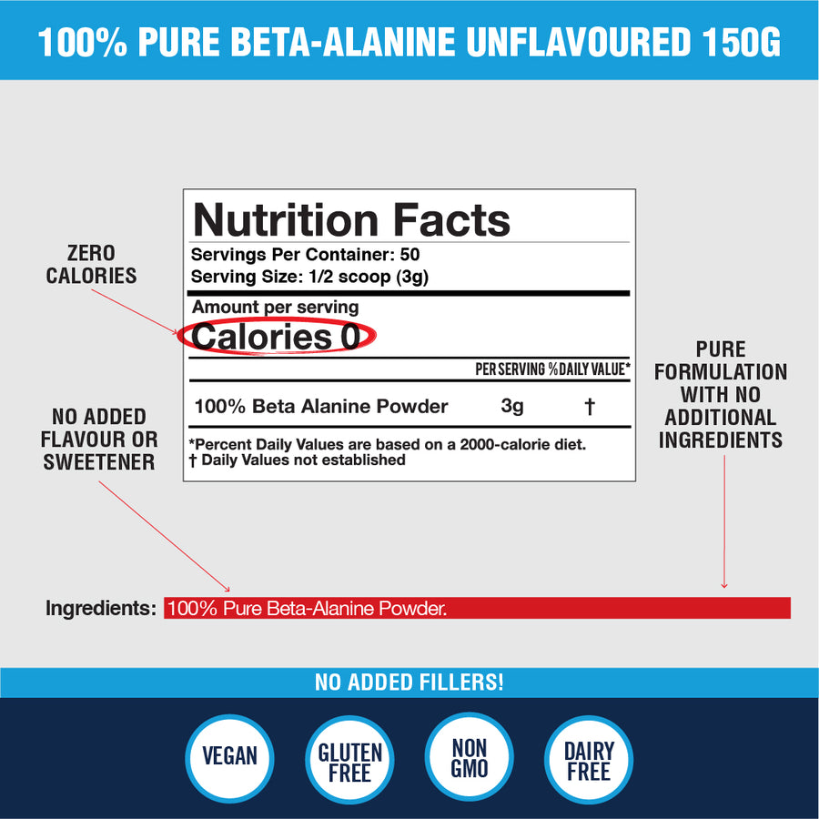 Our Beta-Alanine supplement is 100% Pure Beta-Alanine, no other additives, and no artificial ingredients. Our pure beta-alanine supplement is formulated for athletes and trainers who are looking to boost their workout performance.