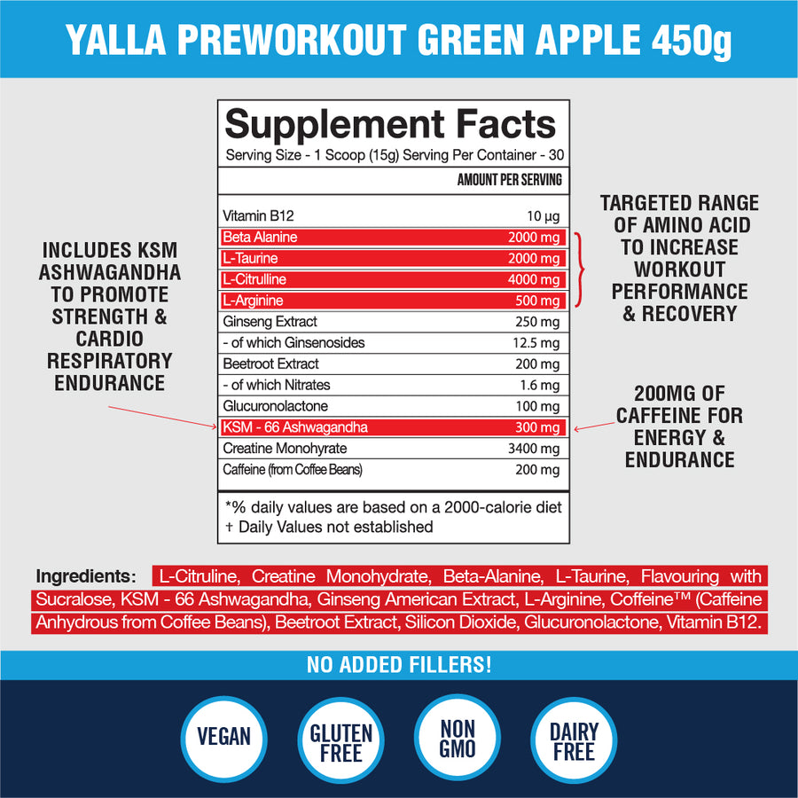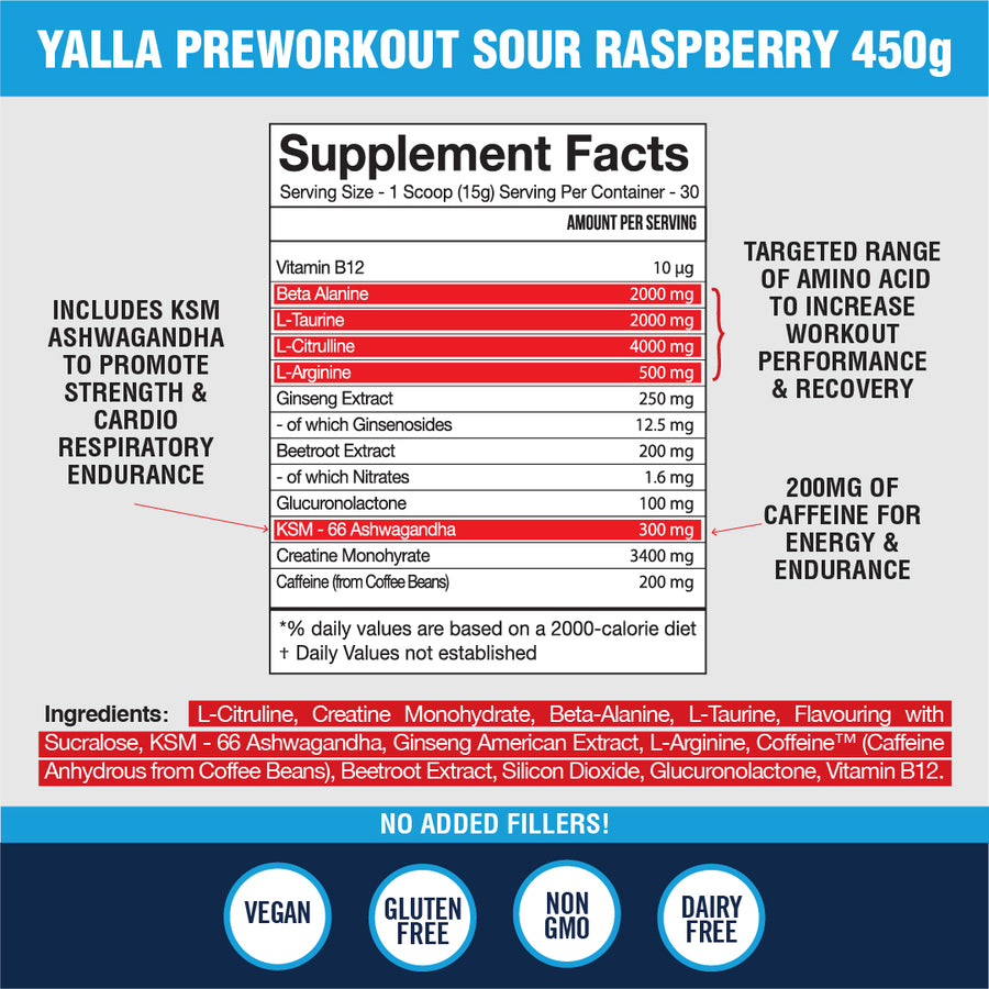 YallaProtein pre-workout is the most innovative pre-workout to hit the Middle East. It was specifically designed to push the boundaries of what can be achieved with a pre-workout, giving you instant energy to push that last rep and sustained energy to hit that last set.