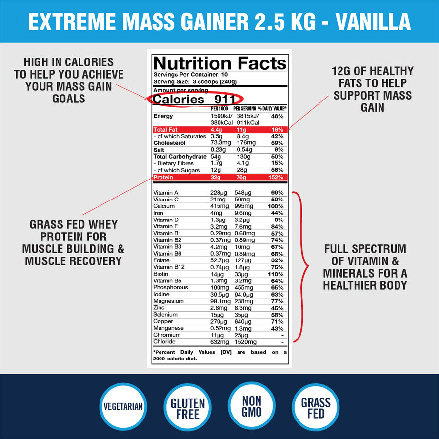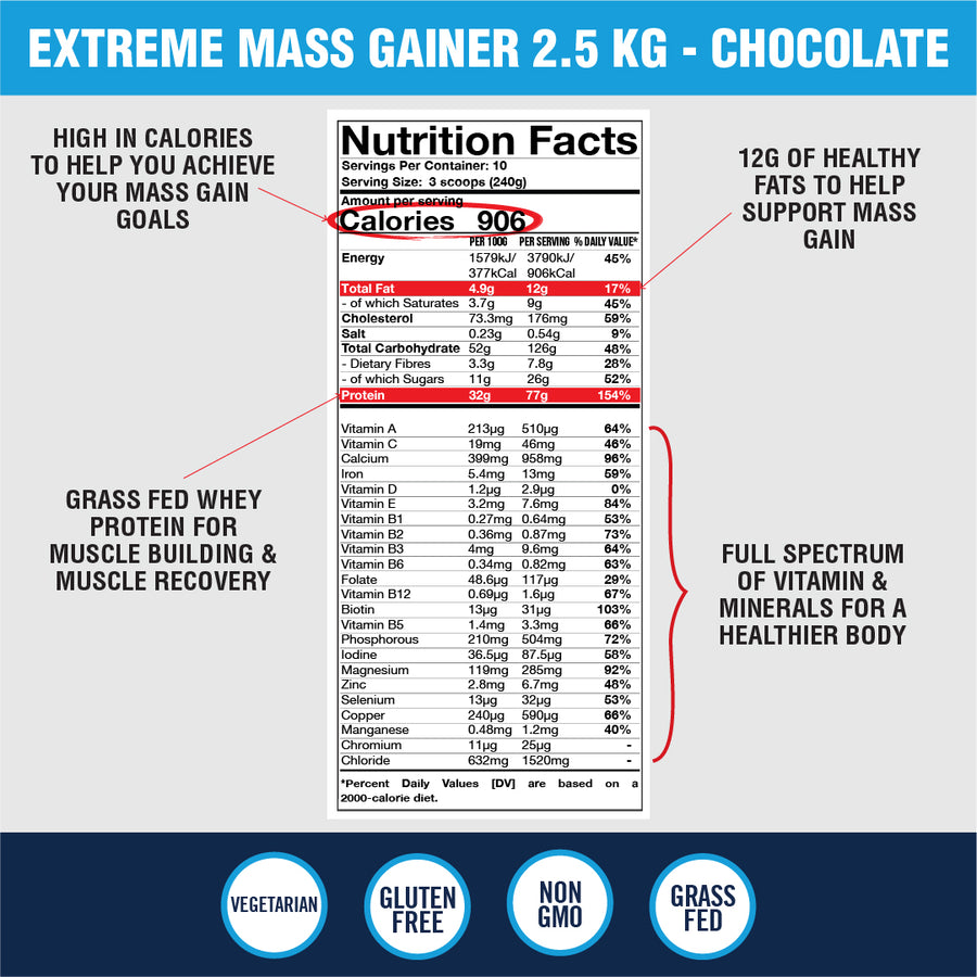 If you're looking for a mass-gaining product to give you the best chance of getting those gains, then our Extreme Mass Gainer is one of the top options out there. It's got high-quality ingredients and an optimal ratio of carbs and protein, which ensures your body will get what it needs for results.