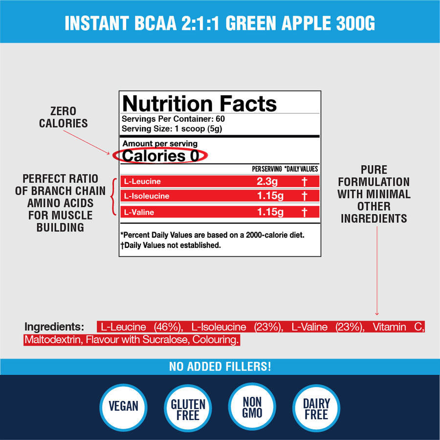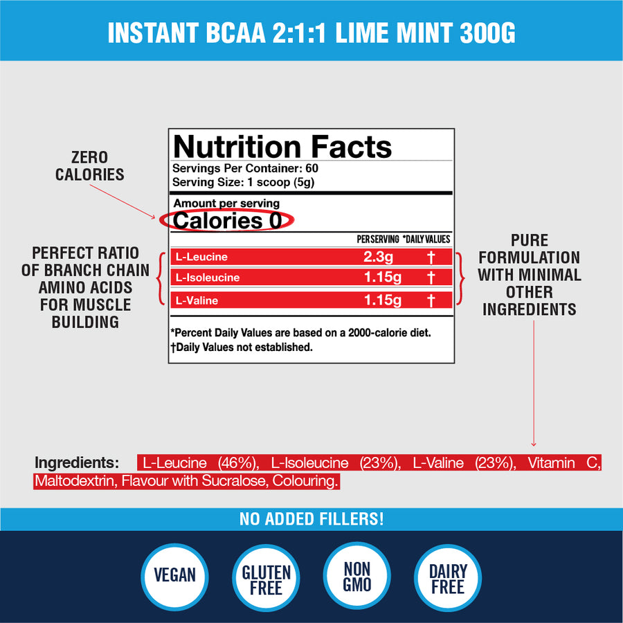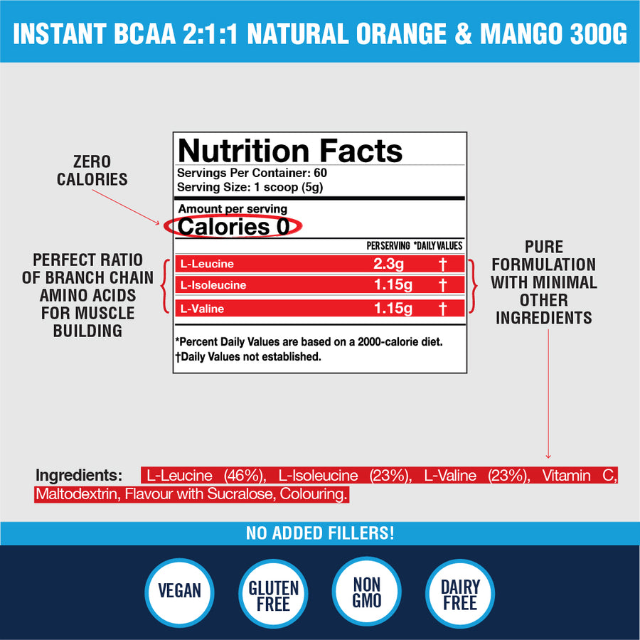 Our Instant BCAA is packed with the highest quality branched chain amino acids; leucine,isoleucine and valine in optimal ratios to enhance exercise performance, boost muscle growth, reduce fatigue and support weight loss.